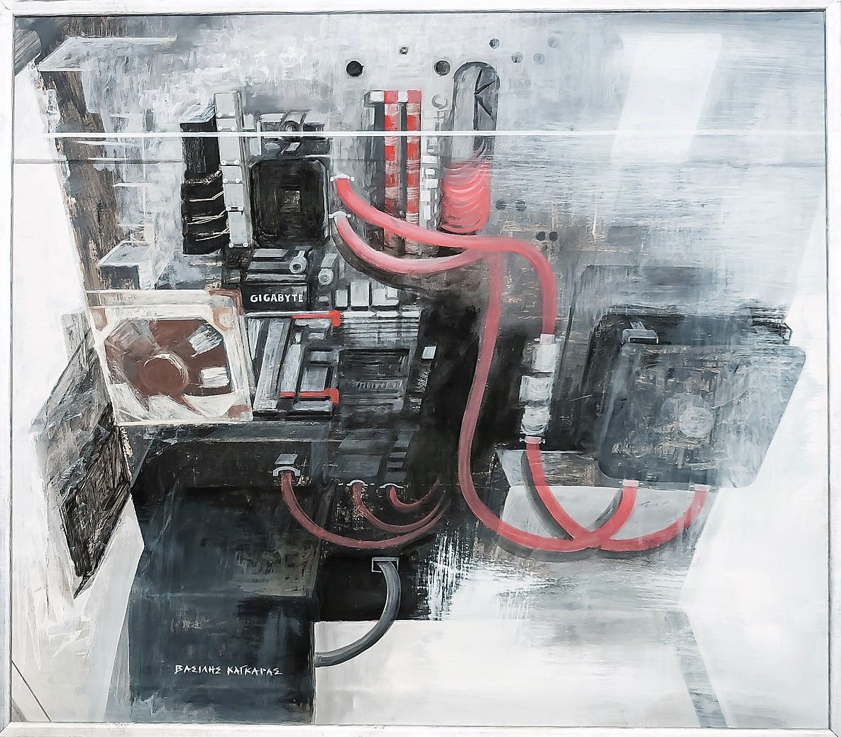 How comes and an indefinable technological object, a set of geometric shapes, cold, in all shades of black-grey, magnetizes the eye for an hour? Are the red wires which like our blood, insist on keeping us alive?